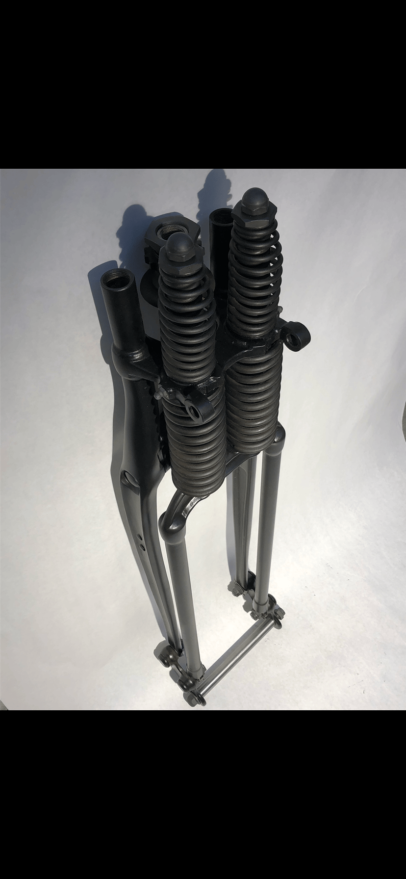 Please contact me directly at [email protected] to put in an order or for any additional information. I require a 50% deposit to start the order. The final deposit is due upon completion. Lead times vary depending current work orders. It can be 18 to 24 months out. Prices listed are for bare metal fork legs and chrome springs and rockers with chrome rocker studs. All springers come with PCP top clamp, stem nuts, timken neck bearings, 3/4” axle and all the necessary hardware. Chrome plating of both fork legs is available for an additional $1,000